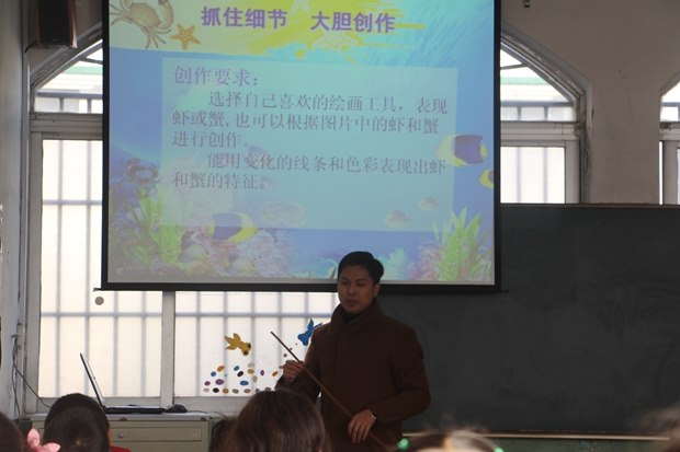 今天上午第一节课,常州市教学能手陆筱雷主任在二4班上了一堂美术课《虾和蟹》。课后,术科组谈晓峰、李新大等教师都做了精彩的点评。大家认为本堂课的教学目标明确、具体,符合美术课程标准的规范和要求,切合二年级学段学生学情;能够结合具体实例,通过观察、操作、想象、推理、交流等活动,在学习知识、掌握技能的同时提升了学生能力。教师在引导的同时,更是创设了开放的课堂情境,充分的让学生探究虾和蟹的相同和不同之处,动态生成层层递进学习知识的重点和难点,段段提升表现创作技能,最终提升了学生注重观察细节表现绘画的能力。作业的评价不仅让学生展示自己的作品,更让作者和小伙伴们来分享如何绘画表现的方法过程。
