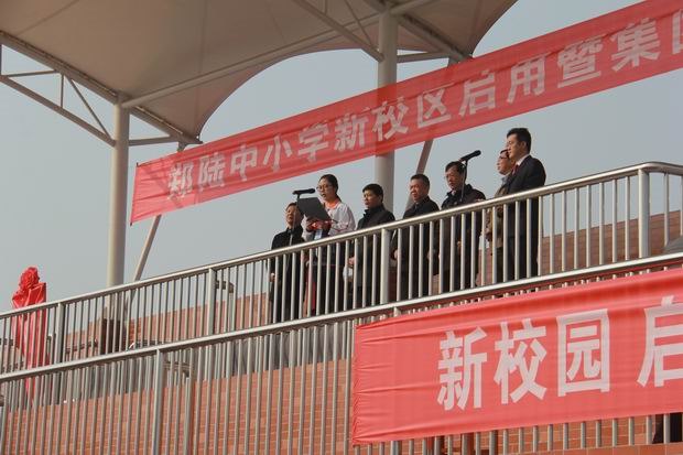 第六个议程:区领导宣布新校区正式启用。许小波区长宣布:“郑陆中小学新校区正式启用!”