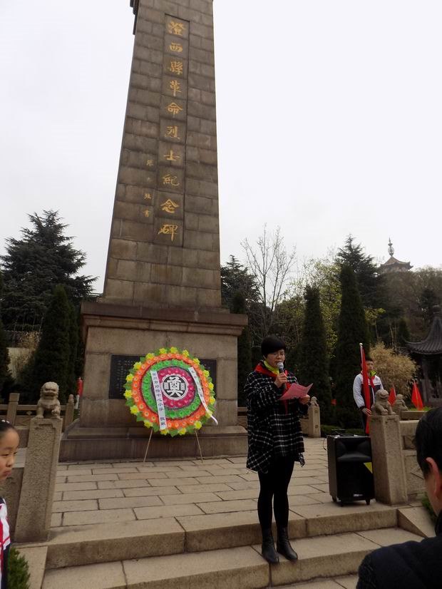 首先,我们来到横山桥镇芳茂山脚下,祭扫澄西县革命烈士陵墓。澄西县(地区),指武进、江阴和无锡三地相邻的广大农村地区,形成于抗日战争时期,是中国共产党领导和发动广大人民群众进行抗日战争相对独立的战斗单位。记录着澄西地区人民在中国共产党的领导下,在大革命、土地革命、抗日战争,解放战争时期的一系列革命斗争历史,再现了澄西千万革命先驱在党的领导下,同日本帝国主义和国民党反动派英勇斗争的感人情形,展现了千万革命烈士不怕牺牲,前赴后继,视死如归,无私奉献的伟大精神。通过这次祭扫革命烈士陵墓,让学生明白一个道理:落后就要挨打。只有民富国强,才能屹立于世界东方。同时通过这次活动让学生懂得珍惜今天来之不易的美好生活,发奋学习,为实现中国梦而努力读书。郑陆镇几位关工委的同志也全程参与了本次祭扫烈士英烈活动,与学生一起悼念革命烈士,缅怀先烈的丰功伟绩。在嘹亮的国歌声中,扫墓仪式庄重开始,全体默哀一分钟,向革命烈士墓敬献花圈,学生代表发言,须敏霞主任介绍烈士陵园的历史,瞻仰烈士墓……扫墓活动结束后,同学们参观了澄西革命烈士纪念馆。