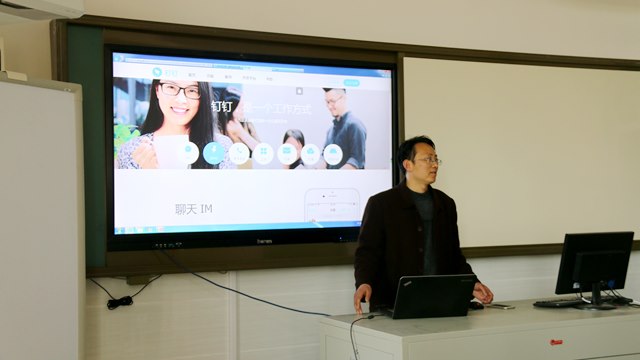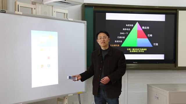学校李志伟主任结合学校管理、移动办公等层面介绍了 “钉钉”的使用。从钉钉的功能介绍、基本使用、学校应用三个方面阐述,教师通讯录组织架构一目了然,随时随地快速找人;单聊群聊,消息已读未读尽在掌控;重要的事情可以发送语音或文字Ding消息,堪称史上信息必达工具开会神器;免费电话多方沟通不用担心话费,随时随地开启电话会议;微应用审批,解决学校日常办公需求,公告、请假、报修、外出等让工作更简单,办公不在局限办公室;日志应用对团队工作了如指掌,工作汇报、记录查看一气呵成;李主任针对工作中的使用场景边讲解边演示,老师们更是玩着智能手机忙得不亦乐乎。
