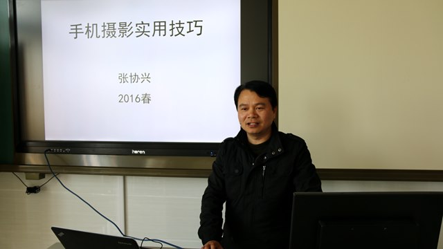 整场讲座,张老师列举了平时拍摄的照片来讲解,诙谐幽默,通俗易懂。一个个熟悉的场景,一张张本校老师亲切的照片,时不时引来老师们愉悦的笑声,当张老师把几张新校图拼接为一张壮观的学校全景图时,老师们发出阵阵惊叹!