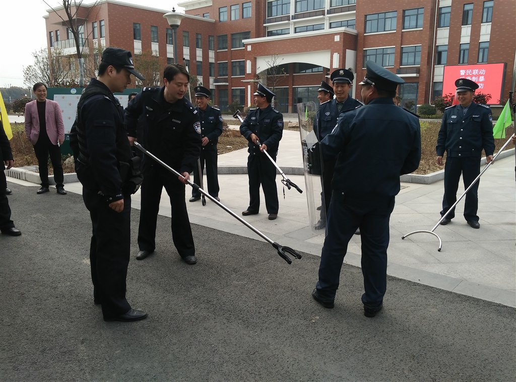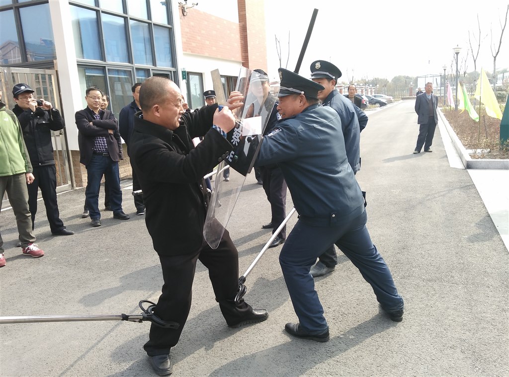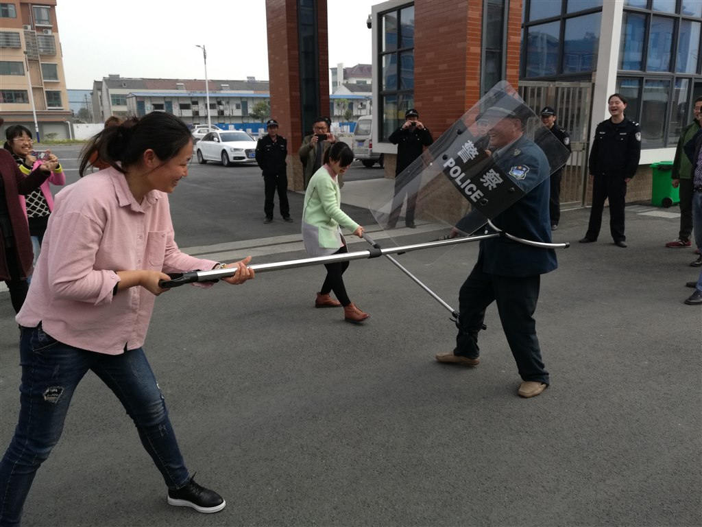 活动中,张所长和两位警员对器械的正确使用方法、注意事项进行了讲解。同时,模拟暴徒持械进入校园,保安、护校教师如何利用钢叉对其控制进行了实战训练。还针对幼儿园女教师护卫队成员身单力薄的弱势,进行了专门指导。