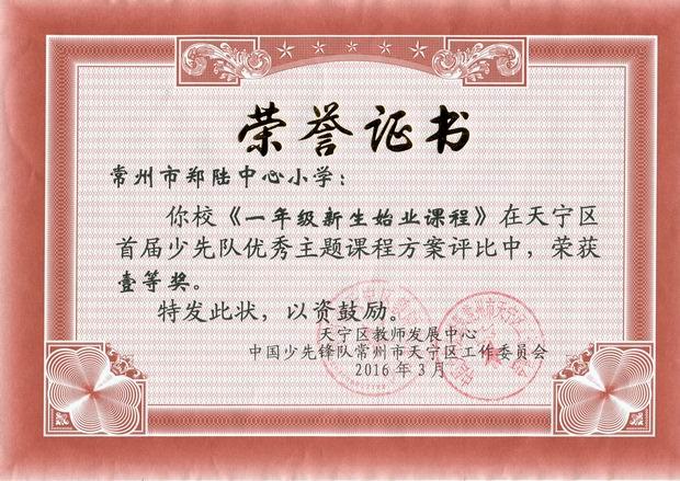 喜讯:少先队优秀主题课程方案荣获区一等奖