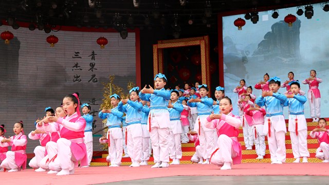 郑陆中心小学的《新龙城三字经》荣幸受邀参与节目录制。一接受光荣任务,高小云、施丽丽等老师与82位五年级学生就利用起平时的零碎时间和部分假期,仔细推敲、反复排练,力求每个动作做到最优最美。5日下午活动正式演出现场,孩子们的动作温文尔雅、画面唯美,仿佛一下子将时光拉到了那个时代,获得了现场观众一次又一次的热烈掌声!