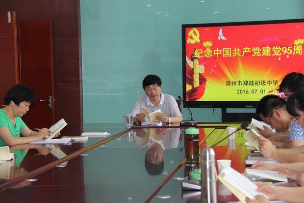 为了庆祝中国共产党成立95周年,深入推进我校“两学一做”教育活动,常州市郑陆初级中学党支部书记钱朝平同志于2016年7月1日上午9:00在行政楼三楼会议室,带领全体党员同志开展了精彩纷呈的纪念活动。