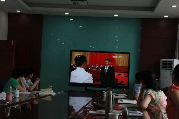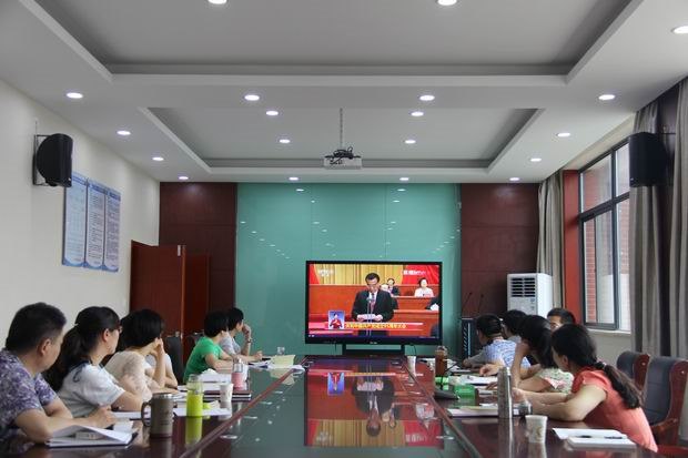 外面大雨滂沱,但是丝毫没有影响党员同志的与会热情。此次纪念活动主要分三大部分。一是钱校长传达天宁区、郑陆镇党委关于“建党95周年纪念活动”的相关精神。二是钱校长给与会党员上了“庆祝中国共产党成立95周年”的主题党课。三是全体党员观看了中央台直播的庆祝中国共产党成立95周年大会的视频会议。此次活动,郑陆初级中学高度重视,除两位党员因身体原因未能参加外,其余全体在职党员均参加了纪念活动。