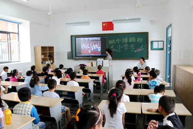 早上7点多,家长们就纷纷带着孩子来到新学校,而郑小,也早已敞开怀抱等待他们的到来。看,五彩的入学门傲然挺立,上面张贴着鲜艳的横幅——“我是幸福的小学生啦”,旁边巨大的电子屏上滚动着“热烈欢迎2016级新生和家长朋友们”的欢迎语,让人觉得一切都充满了盛情和欢乐。“杏福娃”走进自己的小家庭——教室,不由得惊奇地睁大了眼睛,前面黑板上“做个博雅的小学生”告诉他们未来努力的方向,后面黑板上的礼仪规范歌谣,好记又好懂。充满童趣的ppt介绍——“小博小雅,欢迎你”拉开了今天活动的序幕。通过图文兼具的介绍,“杏福娃”们了解了郑小是个有着一百多年历史的老学校,现在她搬到郑陆镇环境最优美的地方,学校的各个场所、各种活动,都是那样引人入胜。随后,在老师的带领下,“杏福娃”们大胆秀秀我自己,开动脑筋转转转,拿起彩笔画画画,来到操场跳一跳,穿过新校认一认……在校门口,拱门下,可爱的“杏福娃”们比划着剪刀手,绽开最美的笑容,留下了夏令营也暨意味着正式跨入小学阶段第一天的最好记忆——每个小家庭的合影。