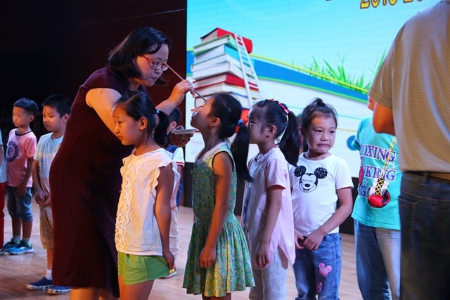 作为二至六年级的始业小达人代表,师兄师姐们同样送上了属于自己的礼物和祝福,古意盎然的《弟子规》诵读、铿锵有力的武术操《少年中国》,牢牢地吸引着一年级小朋友的目光,更赢得了在场的老师和一年级家长朋友们的赞许和鼓掌。沈校长当场宣读了一年级始业小达人的名单,姚校长和邱校长向孩子们颁发了始业达人证书,掌声、欢呼声、照相的咔嚓声瞬时响成一片。