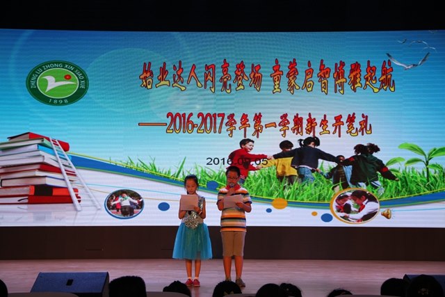 “在春风里播下一粒种子,秋天里就收获一颗果实,今天起与美德和智慧同行,明天才能踏上博雅的旅程……”随着小主持人清脆的童声,郑小2016级新生开笔礼暨各年级始业课程的结业仪式在博览楼报告厅举行。一年级新生家长也兴致勃勃地参加了既有古意雅韵、又不乏生机活力的隆重仪式。