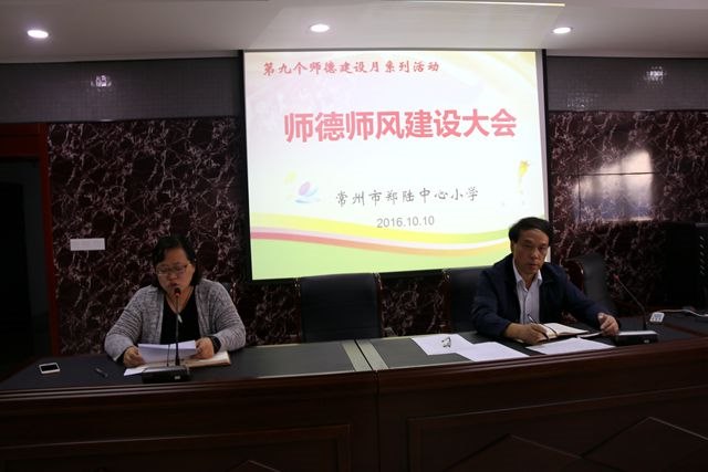 金秋十月,丹桂飘香。为加强学校教师的职业道德建设,提升广大教师的职业道德水平,贯彻落实区教育文体局《关于进一步加强教师师德师风建设的通知》精神,10月10日下午,郑陆中心小学组织全体教师召开师德师风建设大会。