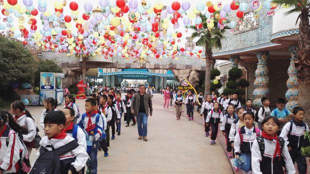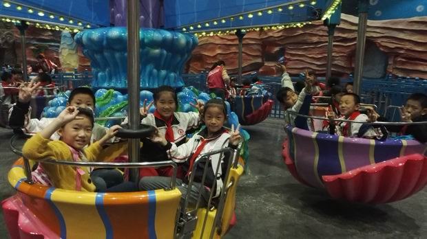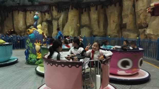 这天虽然天气阴凉,但在嬉戏谷里充满着孩子们的笑声和呐喊声,玩得开心极了!在“海地精灵城”,孩子们观看了4D海洋影片,感受了梦幻4D的童真,感受到了科学技术的无比魅力,惊讶声、欢笑声和影片中的配音童声合成了悦耳的交响曲。在“幸福旋转”娱乐处,孩子们看到高大的摩天轮跃跃欲试,想亲身体验,于是排着队在等候,过了会,兴致勃勃地登上了摩天轮,随着摩天轮的转动,好像自己悬挂在空中一般,最大的感受就是到达顶端能看到嬉戏谷的整个美景,但当摩天轮在旋转,载人的箱子在滑动时心里有点害怕、紧张。再看孩子们玩的“神奇飞毯”、“鲸鱼船”、“空中大巡逻”……到处都可以看到孩子们欢快的身影,时时都可以听到孩子们的笑声……