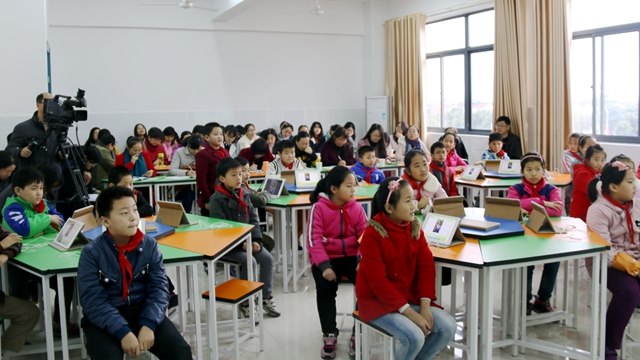 寒冬将至,雨丝飘飞,但在郑陆中心小学的云教室内,却正充满课堂的激情,因为互联网+技术支持下的语文口语交际课堂范式研究的研讨课正在进行中。