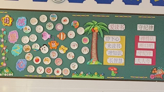 生日庆祝会上多余下的蛋糕餐盘,往往是丢入垃圾桶的多。一、二年级的孩子们把这些小小的餐盘充分利用,用自己灵巧的双手,在洁白的餐盘上描描画画,绘制出了一幅幅精美绝伦的餐盘画。孩子们说:我们要感谢赐予这一切的人和物,不能浪费。小小的餐盘经过孩子们的精心制作,仿佛赋予了生命一般,一张张张贴于黑板上,成为教室里一道亮丽的风景线。精心设计,细致描绘,孩子们用心在书写,用情在抒发。