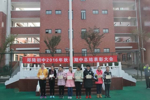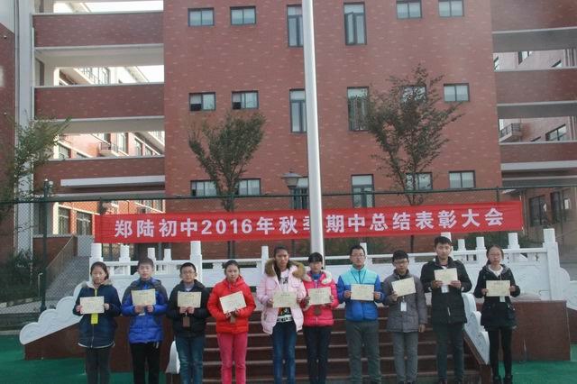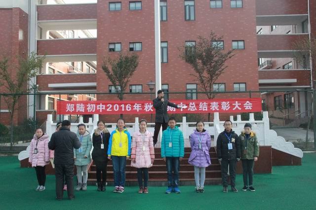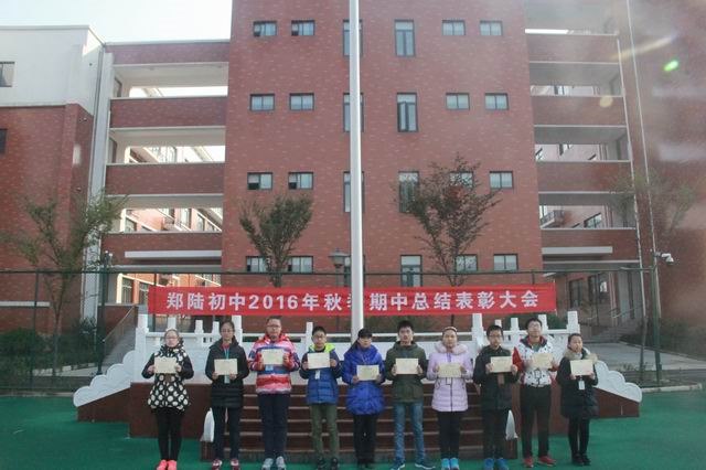 早上,雪后初霁,阳光灿烂,气温偏低,同学们列队整齐,认真聆听。表彰大会简单隆重,分两个议程。首先由薛主任宣布“学习标兵”、“勤学之星”、“进步之星”等表彰名单,三位校长分年级发荣誉证书并合影留念。薛主任对这些被表彰的同学表示祝贺,并提议把最热烈的掌声送给辛勤付出的老师们。接下来,由分管德育的陈光华校长做总结性发言。陈校长的发言主要分以下几点:一、肯定我校学生在本次期中考试中取得的成绩,尤其是初三年级,并代表校行政对取得优异成绩的学生表示衷心的祝贺,对辛勤耕耘的老师表示衷心的感谢;二、指出学生中存在的问题,告诫同学们要正视自己存在的不足;三、对全体学生提出四点期望:1、尊师爱校,希望大家对老师常怀感恩之心,用自己的行动珍惜并爱护学校的荣誉;2、勤奋好学,履行好学生学习的天职,对自己的人生负责;3、文明守纪,用自己的言行展现我校良好的精神风貌;4、安全健康,提高安全意识,培养健康身心,做阳光的郑中学子。