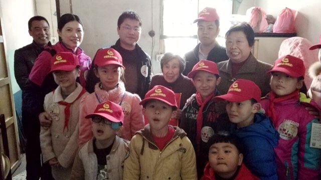 孩子们的爱心和责任心感动了在采访中结识的中国黄金郑陆店的陆经理,他当即给孩子们留下了联系方式,表示愿为爱心活动提供全部物资。兴奋的孩子们回校后向老师做了汇报,郑小学生中心立刻联络了郑陆镇社区居委会冯国庆书记。社区正有开展关爱老人活动的意向,冯书记和社区工作人员连夜进行排查筛选,最后确定了十户生活困难的独居老人家庭,并带着孩子们一家一户开展探望和慰问。