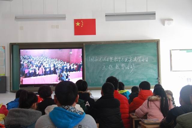 为了配合本次“12.4”法制宣传日活动的开展,学校开展了一系列的活动:12月2号,组织全校师生收看了现场直播的“国家宪法日暨教育系统宪法学习日”主题教育活动现场大会,让学生们真切感受到了国家对青少年进行法制教育的重视,也真实感受到了宪法的神圣不可侵犯;同时为了营造更强的学法、守法氛围,学校在校门前悬挂“学习宣传宪法,大力弘扬法治精神”的横幅标语;并利用电子屏滚动播放法制宣传标语;在宣传橱窗张贴法治宣传教育内容等。同时还利用国旗下讲话,由政教处缪菁菁老师进行了《学法用法,从我做起》的教育活动。