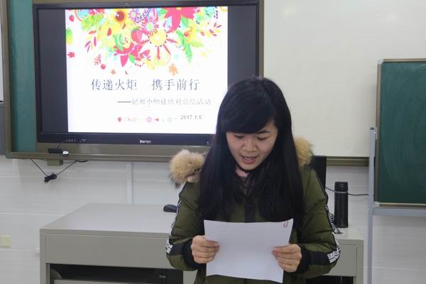 在期初的启动仪式上,学校明确了师徒结对的职责,现在,大家相聚一起,共同回顾、盘点、展望。一对对师徒分别登场,由徒弟教师先讲述一学期来的成长经历、难忘事件,师傅教师再给予中肯评价和建议。作为刚参加工作的新教师李勤,她谈到:“在这个活动中我有幸拜吴晓亚老师为师。吴老师是一位严谨而有认真的老师。她有很多创新的想法,都会毫无保留地传授给我。更让我感激的是在互联网+背景下的口语交际这一区级公开课的磨课过程中,吴老师更是不遗余力,她抽出下班时间帮我一遍一遍地梳理教案;一次又一次地带我试上;试上后,耐心地帮我修改教案,并且不断地鼓励我。在她的鼓励、指导和帮助下,我终于圆满完成了任务。印象中最深的是在上课之前,吴老师不断安慰我:“即使这一次上不好也没有关系,尽力就行。”我知道,她比我更重视这一次的课。我更明白,应该全力以赴,不辜负她对我的期望。上完课之后,我对吴老师表示感谢,吴老师说了一句我永远也不会忘记的话:“你叫我一声师傅,这些都是应该的。”听到这些,吴老师微笑着,告诉她“成功永远只会青睐勤奋者,我从你身上看到了曾经的我:那样努力,只为一位教师的责任感!朝气蓬勃的年龄,正是奋斗的好时光,正是人生的最美季节,把你最灿烂的光芒展现在最美的季节吧!”……师徒们真挚的感谢,谆谆的教诲,那样情真意切,让人感动。
