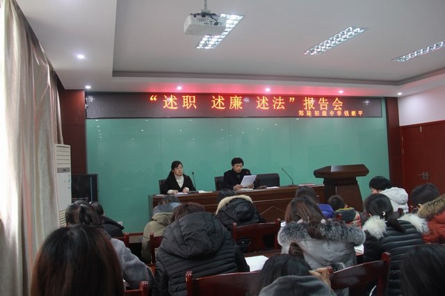 1月9日,在区教育文体局柴曙英、杜明两位主任的监督和指导下,郑陆初中开展了“述职、述廉、述法”报告会,校党支部书记、校长钱朝平同志向全体教职工作了近一年来的工作情况汇报。