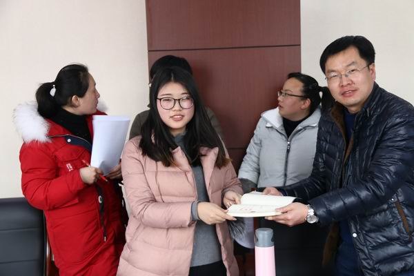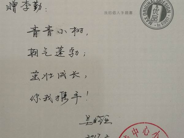 同时,根据徒弟教师制定计划中谈到的阅读问题,蔡主任特别向青年教师推荐了二十本经典书籍。这些书中,有不同领域的,有不同学科的,有方法指导的等等。学校给每一位结对的教师赠送了一本笔记簿,上面写着:“传递火炬,感谢有你!”徒弟的扉页上则是师傅的亲切寄语:“赠李勤:青青小树,朝气蓬勃;茁壮成长,你我携手!”这是师傅吴晓亚给徒弟的留言;“赠刘秋燕:教育只有一个字:爱!”这是师傅范建忠给徒弟的忠告;“赠王亚青:教学相长,相互学习,共同提高!”这是师傅何华秀给徒弟的承诺;“赠恽洁:一路同行!”这是师傅须敏霞与徒弟的情意……徒弟们将带着学校、师傅的希冀,在这里写下美丽的故事,写下心灵的感悟。