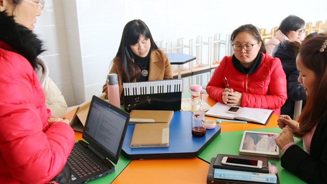 本学期,两位年轻的音乐老师计划在3月份开展iPad环境下的音乐课。怎样让学生在数字化环境下丰富音乐体验,拓宽音乐视野,提升知识储备量,尊重学生的差异。大家各抒己见、出谋划策。数字化教学要亮出学科特色,梳理学科教材找出融合点。有选择地用好数字化工具与平台,注重数字化与学科研究整合,提高学习效率。