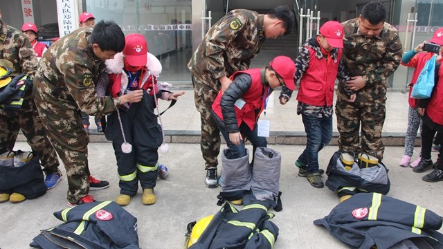此次别开生面的“专题采访”活动,让小记者们有了许多“第一次”体验,第一次现场看“豆腐块”被子,第一次穿上消防衣,第一次登上消防车,第一次看消防官兵器材表演……为了让小记者们更加实质性得了解消防装备知识,官兵们还让一些小记者亲身体验了穿戴消防战斗服、佩戴空气呼吸器,着实让同学们过足了一把“消防瘾”。期间,这些小记者们一边认真倾听消防员叔叔的讲解,一边还不忘拿出采访本,认真记录着。