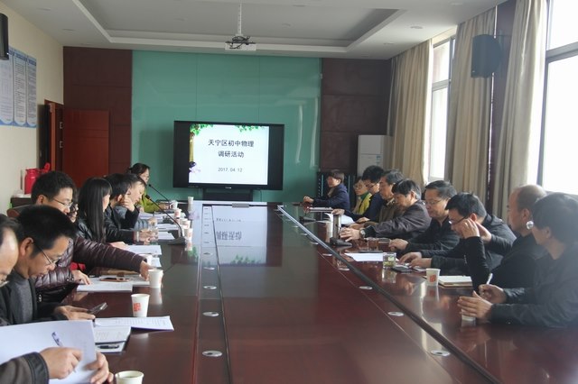 2017年4月12日上午,常州市天宁区对郑陆初级中学进行了物理常规调研。天宁区文体局汤国忠局长、毛刘红科长、胡陶科长、初中物理学科中心组成员、天宁区6所初中校物理教研组长来校进行物理教育教学常规工作的检查。