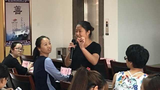 第二个环节就是新班主任们最期待的现场解惑环节。新手们提出一个个班主任工作中可能会遇到的问题,寻求解决的方法。老班主任轻轻松松,三言两语就能完美解决。“当学生无视老师的批评与教育,表面听从,过后一如既往,班主任该怎么办?”“遇到特别另类的学生,比如上课喜欢站着,做操不好好做,总喜欢做一些破坏纪律的事来引起老师的注意,针对这样的学生,采取怎样的教育方法比较合适?”“当孩子因家庭纠纷出现心理问题时,班主任该如何引导?”……一个个问题在老班们现场的妙语如珠中轻松化解,新班们一个个如释重负。看来,老将出马,果然不同凡响!