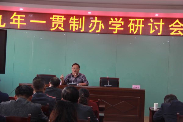 贡和法校长是位教授级特级教师,他以自己从教36年来的“‘教学、科研、管理’相融相生”的教学感悟开始了今天的讲座。他对九年一贯制学校的管理有着自己独特的思考。他介绍了自己的教育发展观——“以发展科研发展教师,以发展教师来发展学生,以发展学生来发展学校”;从理念维度、精神维度、智慧维度介绍了自己的管理心语,他认为,一个学校要以“质量立校、队伍兴校、特色名校、文化强校、改革促校”。他还分析了“九年一贯制”学校的现实样态,他认为“九年一贯制”有助于资源优化组合、有助于提升素质教育水平、破解了基础教育改革难题,同时他也分析了“九年一贯制”的困境。他还分享了自己对“九年一贯制”学校发展新样态的研究。“在学校发展的内涵建设上找到精准的发力之处。”“走内生式发展之路,创建原生态,去功利、改良知、可持续的现代学校”等观点引起了全体与会人员的思考和共鸣。