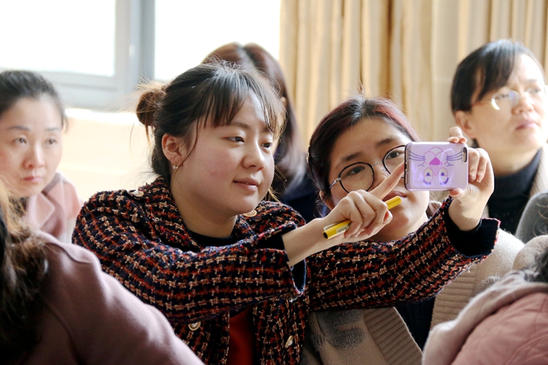接着,李主任给班主任们演示了“校内外”平台手机端的操作流程,账号登录,日志发布,修改与存档,重点演示了档案库的管理,目录创建和归档,全体班主任老师跟着李主任一起进行了实践操作。