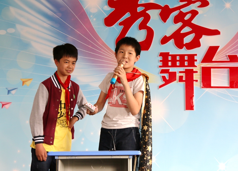 开场节目是中西合璧,中华武术、跆拳道、三节棍轮番登台,通过武术训练能够增强体质,能陶冶情操,精彩的武术表演号召大家一起加入运动的行列!接下来是《神奇魔术秀》。六(5)班魔术手章文韬闪亮登场!大家不要眨眼,精彩魔术开始了。随意报上一个数,把手中的扑克牌分成若干份,奇迹的时刻由大家共同来见证!钱雨萱的吉他独奏《流行的云》,演绎的是我们能像白云一样在天空中自由飘荡的心愿,无论是在学习上还是生活里都有专属于自己的领地,自由地释放自我!女生二重唱《追梦赤子心》更展现了新时代少年儿童的精神风貌:向前跑,坚持到底,永不放弃,为自己的梦想去努力,去奋斗!陆相媛、王雨平的相声让大家在开怀大笑的同时,也进一步感受到了相声文化的魅力。黄馨茹等同学的《拉丁舞-牛仔》舞步敏捷、跳跃,舞姿轻松、热情、欢快。