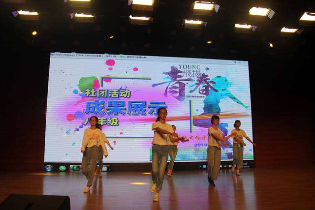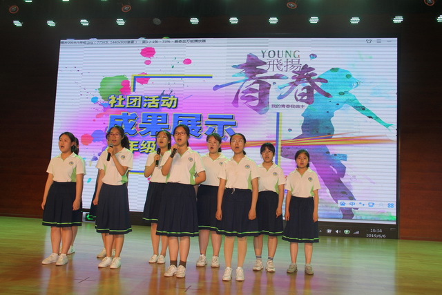 首先是各社团的成果汇演。整场演出节目编排新颖,形式多样,亮点频频,令人耳目一新。晓生文学社的同学用诗歌演绎精彩,用文字诠释生命;十字绣社团的同学向同学展示了一幅幅精美的绣品,她们用自己的作品告诉同学们,唯有耐得住寂寞才能收获美丽;诚行法学社带来的《模拟法庭》通过场景再现,不但让同学了解到开庭的流程,还告诉同学们要知法守法:经典社团的同学们声情并茂地诵读一首首耳熟能详的经典古诗词,展示了中华文化的博大精深,源远流长;声乐社团的同学们用天籁般的声音倾情演唱《明天,你好》,给现场观众留下深刻的印象;活力四射的排球社团的表演,科技制作社团的《我的飞天梦》,板报设计社团精心制作的小报,无不展示同学们的才艺;最后,舞动的心社团带来的动感舞蹈《we will rock you 》吸引了众多观众的眼球,活动在同学们舞动的身躯,妙曼的舞姿中落下帷幕。