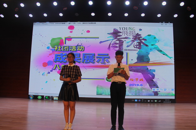 为了丰富校园文化生活,展示社团风采,6月6日下午郑陆实验学校初中部八年级社团汇报演出在图书馆三楼报告厅举行。学校有关部门的负责人、各社团指导老师,八年级全体师生参加了本次活动。活动共三个流程:
