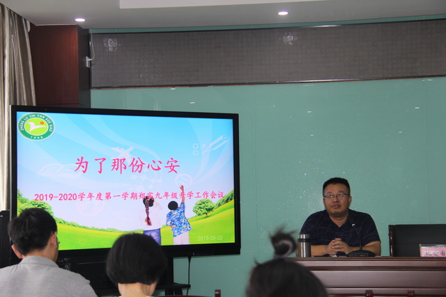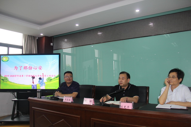 2019年9月2号下午3点20,郑陆实验学校新学期期初九年级工作会议于学校博纳楼二楼楼会议室召开。会议由沈爱国副校长主持,张林校长、陈光华副校长和九年级全体任教老师参与了本次会议。