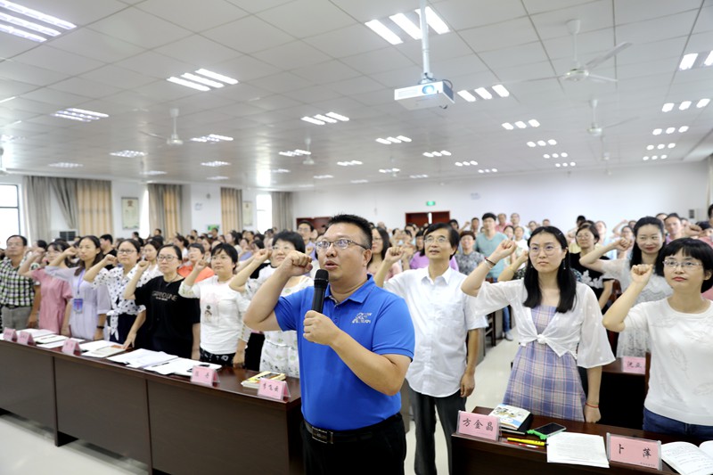 最后在沈爱国副校长的带领下,全体教师共同宣誓:忠于党的教育事业,贯彻党的教育方针,做“有理想信念、有道德情操、有扎实知识、有仁爱之心”的好教师。爱岗敬业,教书育人,为人师表、教书育人,勇于创新,弘扬正气,廉洁从教,为学生的全面发展付出智慧和力量。教育是一种责任,相信每一位教师都能牢记教育的使命,坚守教育的底线,升华教育的责任。