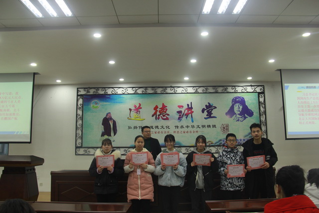 接着,他宣读了获得本学期“博雅学子”、“学习标兵”等各项荣誉称号的学生名单,各班班长到前面领取了奖状并合影留念。
