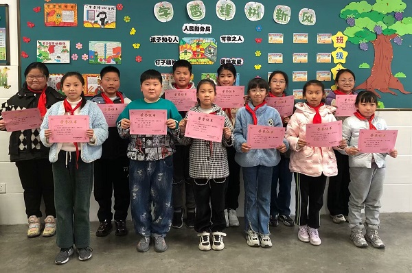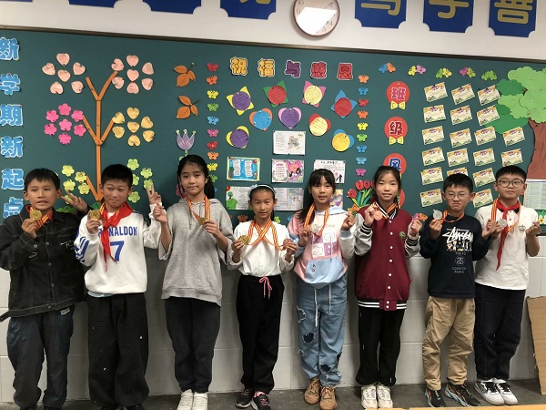 五5中队是一个和谐温馨的大家庭。三十九张笑脸迎着阳光,沐着春风,遨游知识的海洋,收获成功的喜悦,编织美丽的梦想。课堂上,他们刻苦读书;运动场上,他们激情飞扬;活动中,他们团结拼搏有力量。一面面小红旗、一朵朵小红花,一张张小奖状是他们奋发有为的最好奖赏。他们孜孜不倦,好习惯在逐渐养成。他们互帮互助,像珍珠,散发夺目光芒;似小树,正在茁壮成长。“所以才智高,不肯自弃暴,力欲争上游,性灵乃其要。”“文明高雅,乐学善思,相信每个孩子都能走向成功。”这是老师对他们的殷殷期望。做“博学雅行”的好学生,是他们每个同学的目标。他们会怀揣梦想,迎着光亮,奔向更广阔的前方。