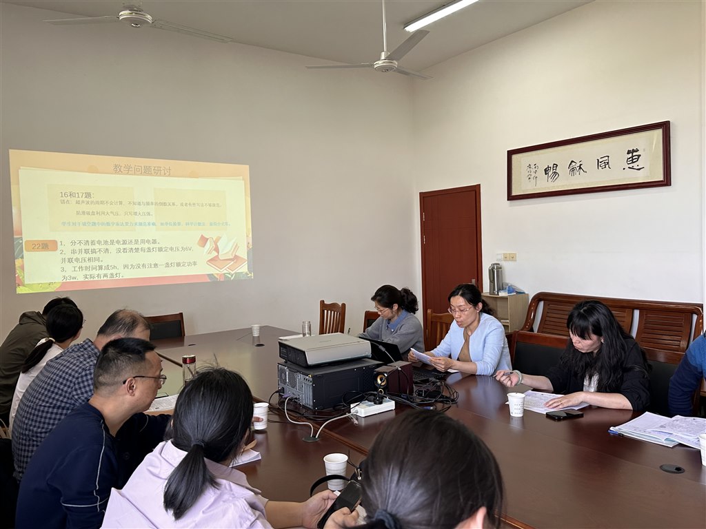 首先各校备课组交流一模阅卷过程中的典型错误,针对典型错误交流解题思路、讲解方法。各校准备充分,从分值、区分度、难度、均分、得分率多维度分析。选择题从知识点的角度考查学生;填空题中的数字表达要力求规范准确,如单位换算、科学计数法、最简分式等;作图题要看清作图要求、实虚线、力的方向问题;计算题重在单位换算,求浮力的方法选择;探究题弄清探究目的,关注实验细节。