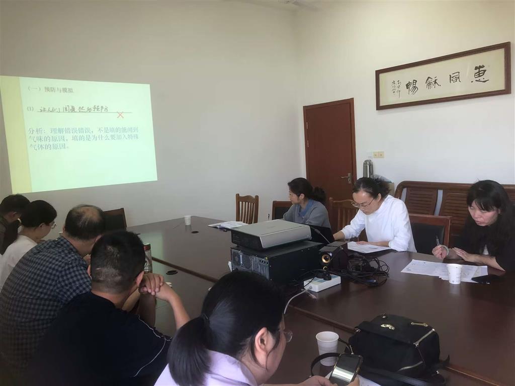 然后各校备课组分享专题复习卷的设计意图。焦溪初级中学的浮力复习专题重在图像、读数、密度计的设计;实验初级中学天宁的八年级分校实验专题重在实验原理、绘图;郑陆实验学校的电磁专题重在主题式设计、细节、变式;正衡中学天宁分校的八年级作图专题重在全面、多种方法解题;东青实验学校的九年级分校实验专题精选的题目具有代表性,非常全面;二十四中学天宁分校的电功率计算专题关注各种题型中求解电功率,从开关的变化、滑动变阻器的移动、旋钮开关来改变电功率;正衡中学的九年级作图专题涉及力学电磁,比较全面。