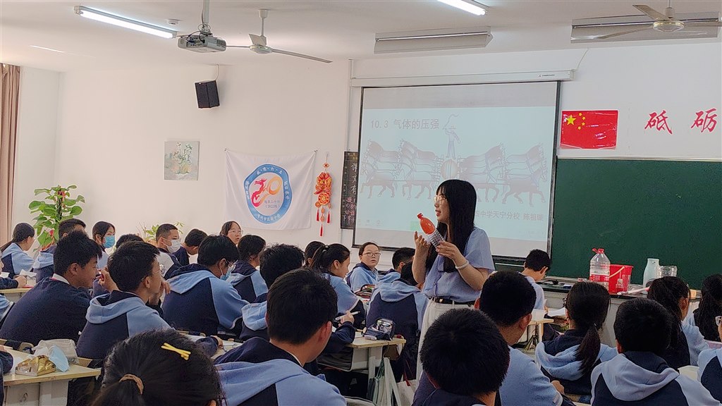 本次活动是两节同题异构课,三位新教师以“气体压强”为主题,进行了精彩的汇报课展示。三位老师都通过实验和活动探究,有效地组织学生思考,使学生体验科学探究的全过程和方法,并学习到从物理现象中归纳科学规律的方法。授课教师坚持以生为本,给学生留足探究空间,学生积极讨论交流、竞相展示合作成果。汇报课得到了听课领导、教师的一致好评,为听课教师提供了一个观摩提高、交流研讨的平台。