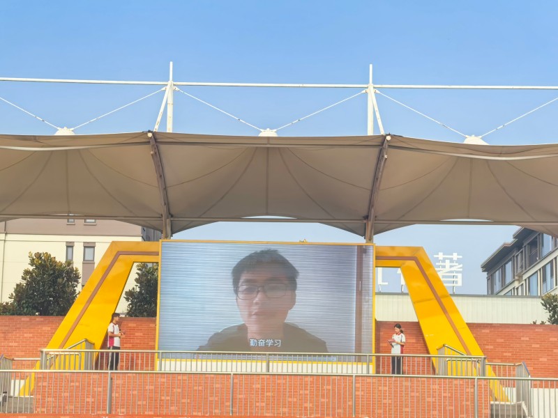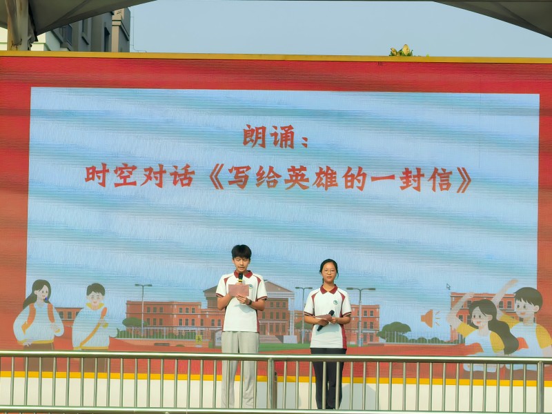 在“薪火相传八十载,筑梦扬帆新征程”的主题下,九(4)班学生代表献上了深情朗诵《写给英雄的一封信》,一句“这盛世,如您所愿”道出了新时代青年对革命先烈的深切告慰与崇高敬意。随后,大屏幕上播放了已毕业学长学姐发来的祝福视频,他们分享成长经历、勉励学弟学妹珍惜时光、勇敢追梦,引起了现场阵阵掌声。