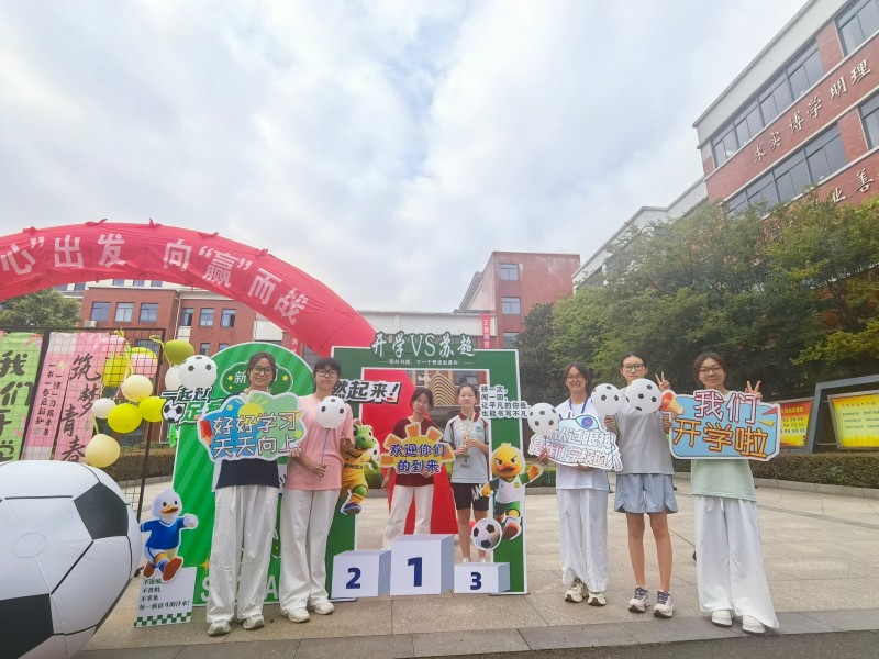 清晨,学校门口早已布置一新。“从‘心’出发,向‘赢’而战”的开学主题和融入足球元素的装饰,凸显了活力与挑战并重的学期新基调。同学们手持足球造型气球,纷纷在主题拍照框前留下新学期第一张笑脸,欢声笑语中凝聚着对新旅程的共同期待。