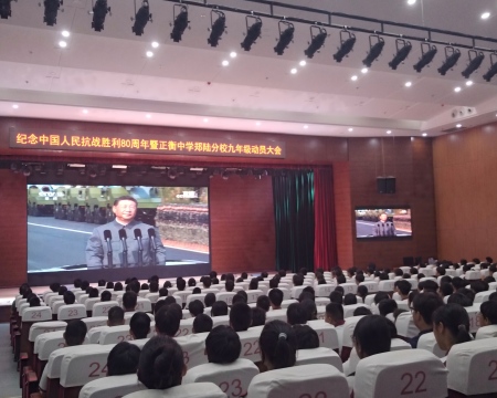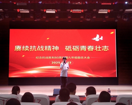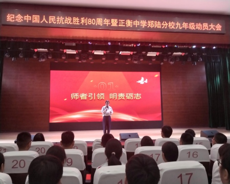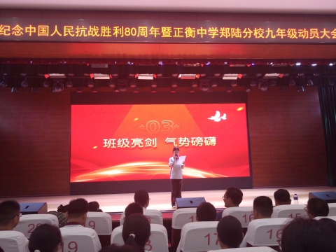 为铭记历史、厚植家国情怀,传承伟大抗战精神,同时激励九年级学子以奋进之姿开启新学期、冲刺中考,9月3日,常州市正衡中学郑陆分校隆重举行“赓续抗战精神 砥砺青春壮志”纪念中国人民抗日战争胜利80周年暨九年级动员大会。全体九年级师生齐聚一堂,在历史回望与青春宣誓中,共同汲取奋进力量。