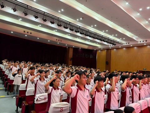 活动尾声,全体学生进行集体宣誓。“我们生在红旗下,长在春风里,人民有信仰,国家有力量……愿以吾辈之青春,捍卫盛世之中华!青春无悔,强国有我!有我!有我!”誓言响彻整个会场,既表达了对祖国的热爱与担当,更立下了为中华盛世拼搏的铿锵誓言。