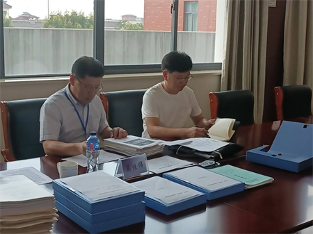 接着,吴科长来到博纳楼小会议室,对照测点,查阅台账资料,和师生访谈,对教辅专项、食堂和食品安全、校服采购等进行详细督查。