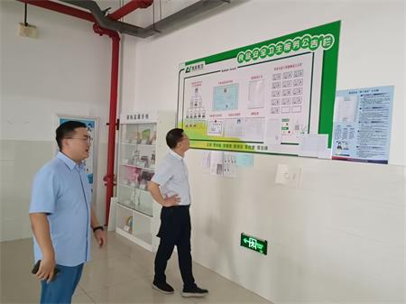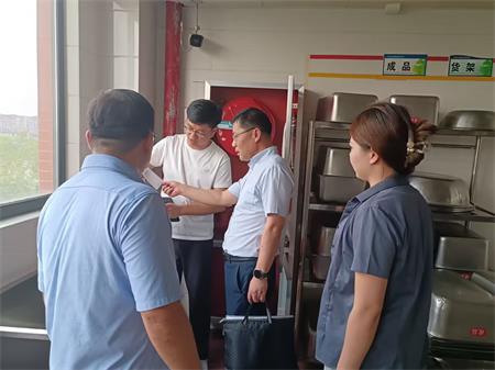 在执行校长刘晟、副校长沈爱国等的陪同下,吴科长走进食堂细致督查。他督查了食堂工作人员的工作流程。来到留样冰箱前,吴科长详细询问了出菜时间、用餐时间、留样量、留样时间,等等。吴科长又重点督查了食品安全第一责任人制度、膳食管理委员会运作、陪餐制度、食堂工作人员持健康证上岗、食堂“三防”设施配置等的落实情况。