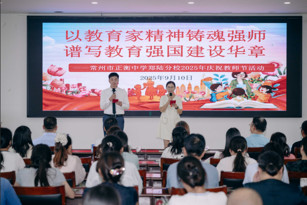 金秋送爽,丹桂飘香。在这满载收获与感恩的九月,我们迎来了第41个教师节。为弘扬教育家精神,致敬默默耕耘、无私奉献的全体教师,常州市正衡中学郑陆分校于2025年9月10日下午举行了庆祝教师节活动。出席本次活动的领导、嘉宾有:常州市郑陆镇党委书记李汉田,常州市正衡中学郑陆分校校长杜娟花,执行校长刘晟,副校长沈爱国、薛东升、吴伟星,以及旬阳市来我校交流挂职的四位优秀教师。